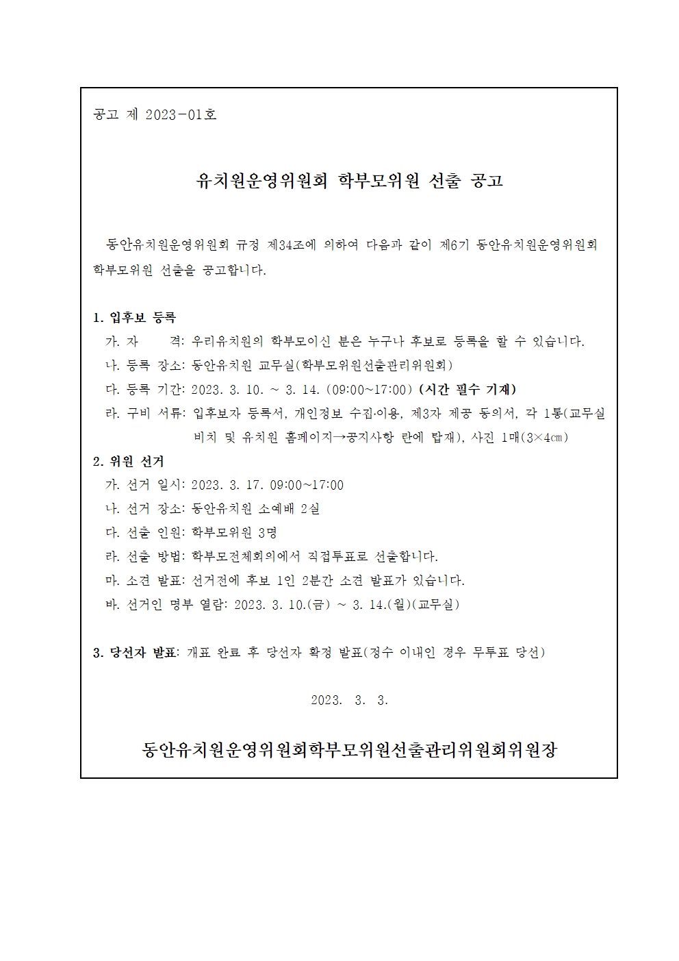 열람 유치원운영위원회 학부모 위원 선거(공고) 홍보 761 2023-03-17
